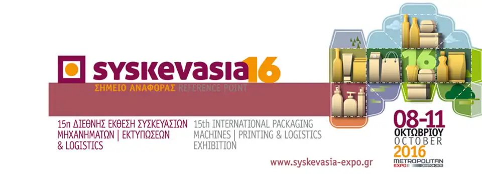 Συμμετέχουμε στην: Syskevasia 2016 15η Διεθνή Έκθεση Συσκευασιών, Mηχαμημάτων Εκτυπώσεων & Logistics από 8 έως 11 Οκτωβρίου 2016,...